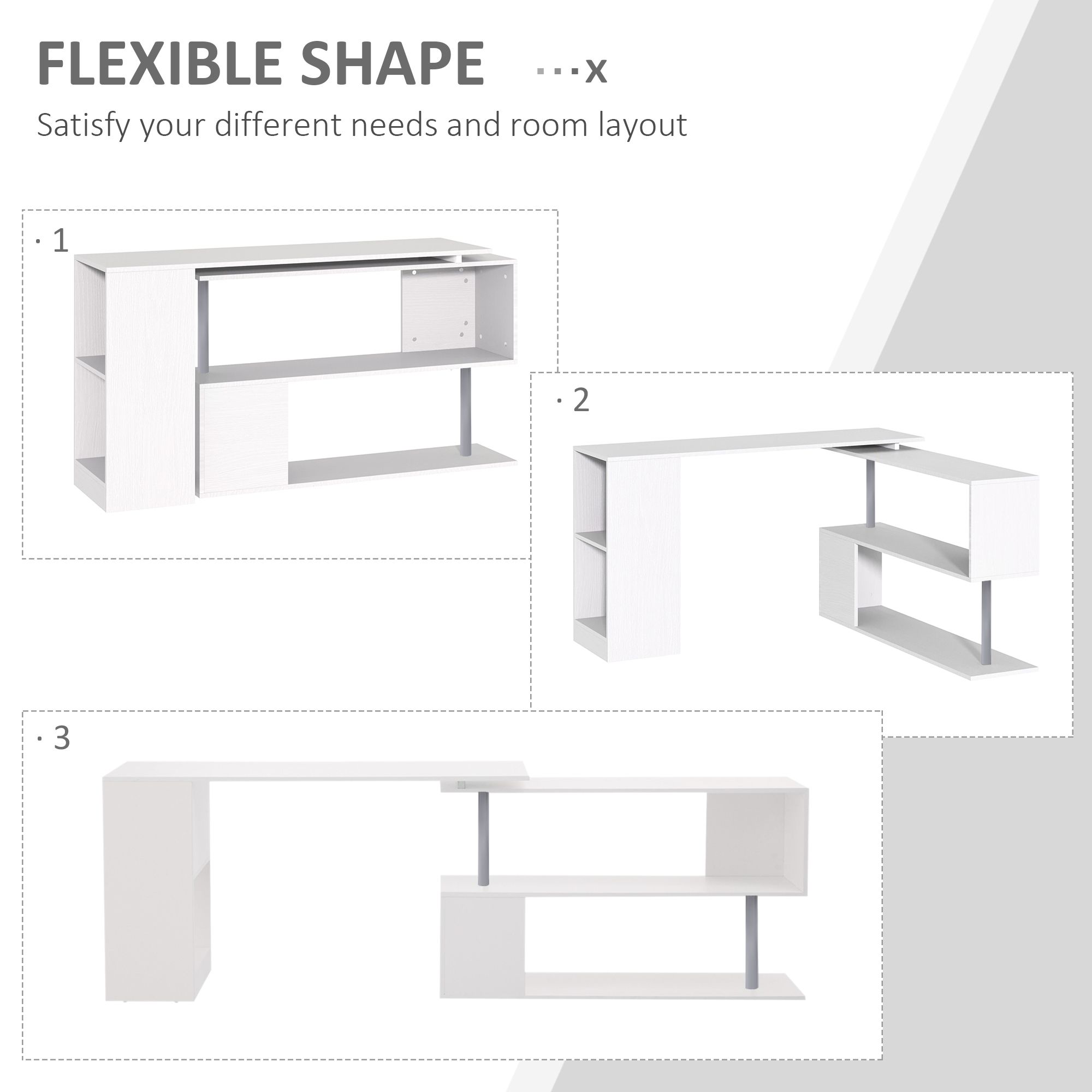 55" Corner Computer Desk, 360° Rotating L-Shaped Desk, Home Office Workstation with 3-Tier Shelves, Bookshelf, White 55" Corner Computer Desk, 360° Rotating L-Shaped Desk, Home Office Workstation with 3-Tier Shelves, Bookshelf, White 55" Corner Computer Desk, 360° Rotating L-Shaped Desk, Home Office Workstation with 3-Tier Shelves, Bookshelf, White