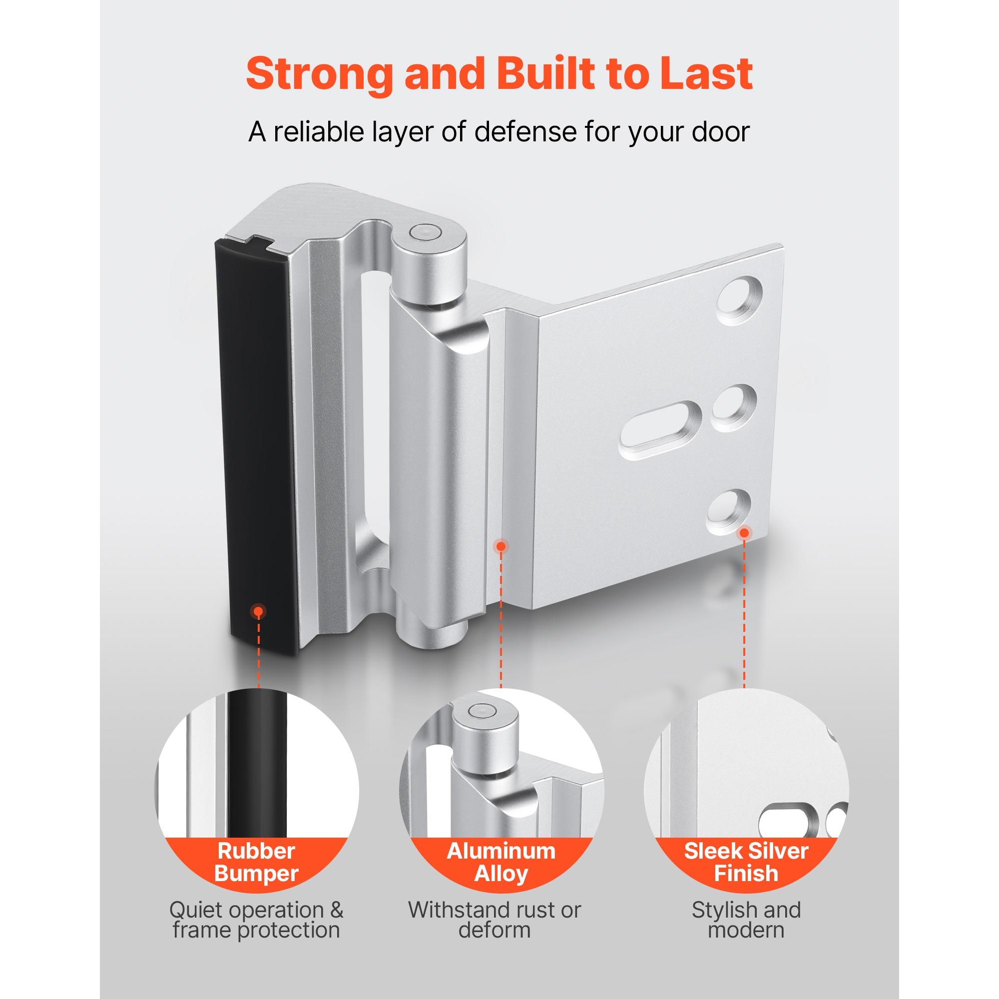 This 2-pack aluminum alloy home security door lock is engineered to handle 800 lbs / 362.87 kg of impact force, effectively deterring forced intrusion. Quick to install and ready to use, it delivers reliable anti-theft performance for your entryway, ensuring your family's peace of mind.